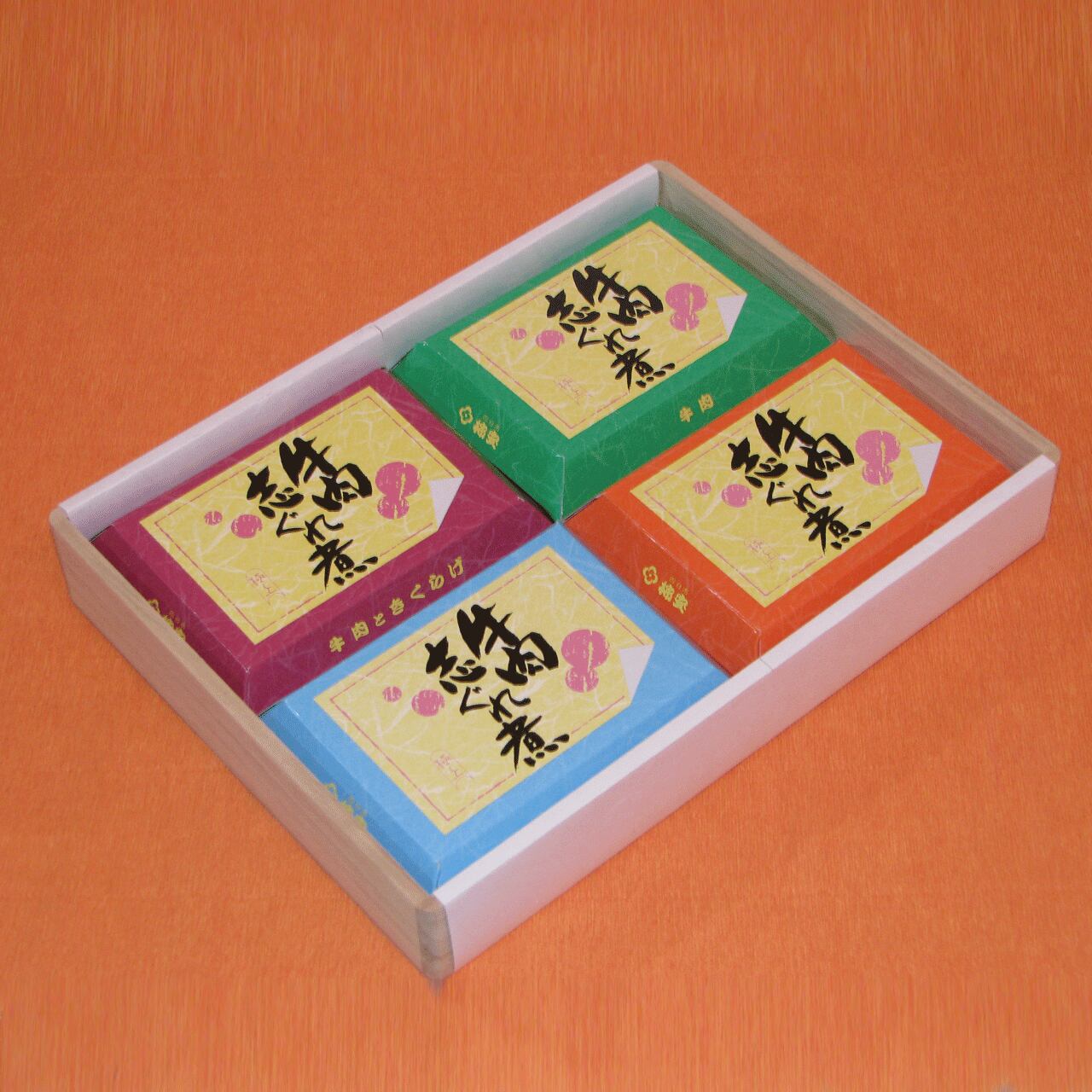 【木箱入り黒毛和牛 】牛肉志ぐれ煮セット(プレーン×1、昆布味×1、椎茸入り×1、きくらげ入り×1)各140g B-3